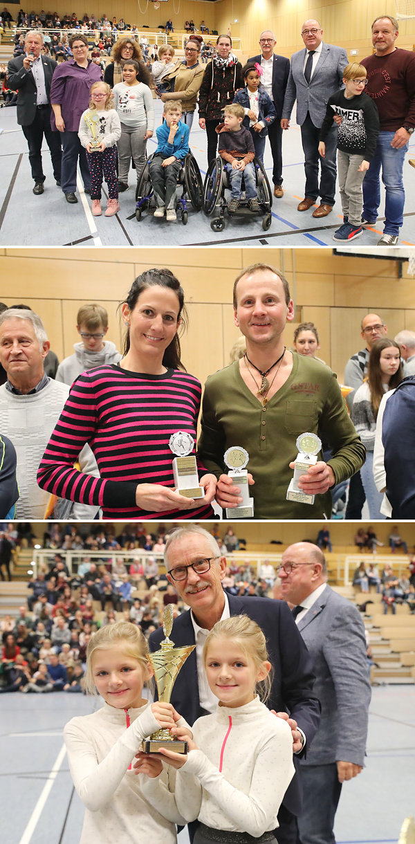 [Oben: Die teilnehmerstärkste Inklusionsgruppe des TV Hackenberg beim 39. Bergneustädter AggerEnergie und Sparkassen Nachtlauf im September - Mitte: Die schnellsten Neustädter beim Nachtlauf: Stadtmeisterin Sonja Hedderich und Doppelstadtmeister Richhard Glatz – Unten: Maja und Antonia Josic als Vertreter „Sonnenschule auf dem Bursten“, Grundschulstaffelmeister bei den diesjährigen Stadtmeisterschaften im Schwimmen]