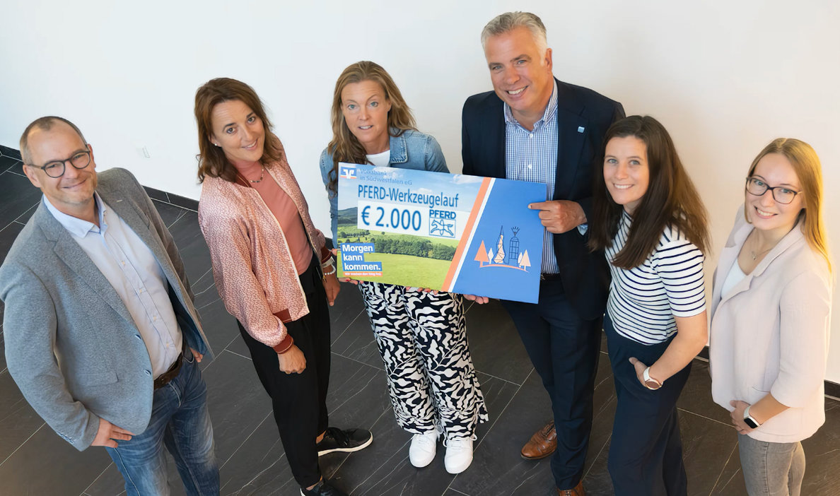 Zur Scheckübergabe trafen sich TV Rodt-Müllenbach-Geschäftsführerin Svenja Massolle und der Vorsitzende Carsten Daase mit den PFERD-Organisatorinnen Maike Daase, Franziska Röhrich und Sabrina Kunde sowie PFERD-CEO Jörn Bielenberg. Die Spende in Höhe von 2.000 Euro werde für die Erneuerung des Sportplatzes, aber auch für die Sanierung des Clubraumes und die Jugendarbeit eingesetzt.