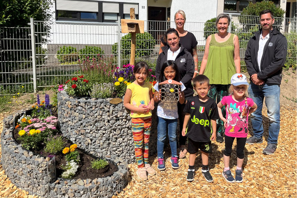 Die Town & Country Stiftung unterstützt auch in anderen Bereichen: Im Rahmen des Themenjahres „FloraFauna“ übergab man bereits am Anfang der Woche eine „Nektar Tankstelle“ und das thematisch passende Wildbienen-Haus an das DRK-Familienzentrum „Krümelkiste“ in Gummersbach-Bernberg. Zu der Steingabione mit Erde und einem 100-Euro-Gutschein für die Erstbepflanzung gab es zudem passende Bildungsmaterialien, heißt es in einer Mitteilung des Kindergartens. Die Kinder freuen sich, dass sie nun den fleißigen Insekten auf „Augenhöhe“ und aus allernächster Nähe beim Nektarsammeln zusehen können. „Dieses nachhaltige Angebot wird uns noch viele Jahre Freude bereiten“, sagte Katja Gerlach, Leiterin der Einrichtung.