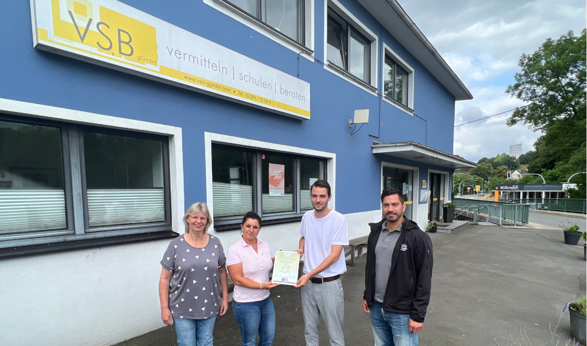 Kathrin und Volker Sörgens sind die Oberbergischen Botschafter der Town & Country Stiftung, bei der sich gemeinnützige Organisationen um Spendengelder bewerben können. Heute Morgen war das Ehepaar, das eine Franchise-Filiale des Bauunternehmens in Lindlar betreibt, zu Gast beim VSB (vermitteln/schulen/beraten) in Gummersbach-Niederseßmar. Dort freuten sich Prokurist Fabian Schürholz und Beraterin Sonja Brachthäuser über den Zuschuss von 1.000 Euro. Das Geld wird zielgerichtet eingesetzt. „Wir schaffen Erstausstattungen für Schulen an“, berichtete Brachthäuser. In dem Projekt „Oberberger Brücken“ werden zugereiste Familien unterstützt. Diese stünden oftmals vor dem Nichts und werden bei z. B. Antragstellungen von der Einrichtung unterstützt und beraten. Schulranzen, Federmäppchen und anderes Equipment werden von dem Geld nun für die Kinder beschafft.