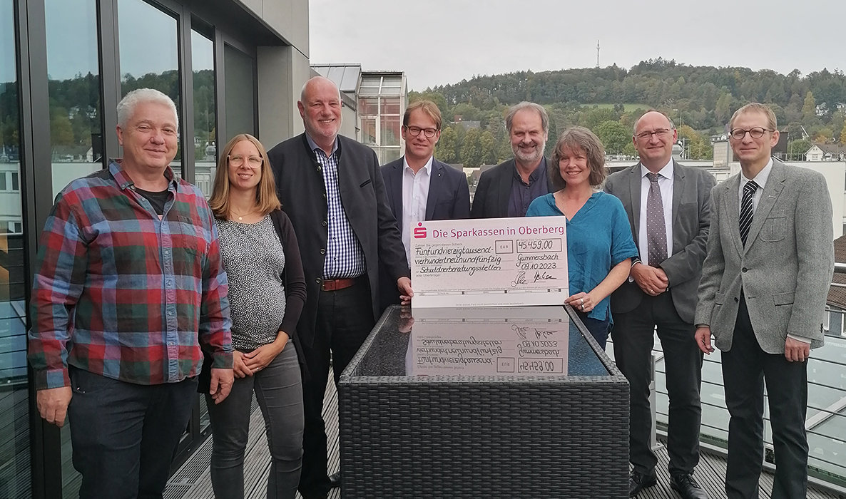 Zusammen mit Gunter Derksen, dem Regionalvorstand der Kreissparkasse Köln im Oberbergischen Kreis, hat Grebe im Rahmen des Termins an Vertreter der drei Schuldnerberatungsstellen der Region einen symbolischen Spendenscheck überreicht. Rund 45.000 Euro sollen den Beratungsstellen von AWO, der Diakonie „Kirchenkreis An der Agger“ und der Caritas zufließen. Die Spende stamme aus einem speziell eingerichteten Fonds zur Mitfinanzierung der Schuldnerberatung und werde, je nach Mitarbeiterstärke, auf die drei Beratungsstellen aufgeteilt.