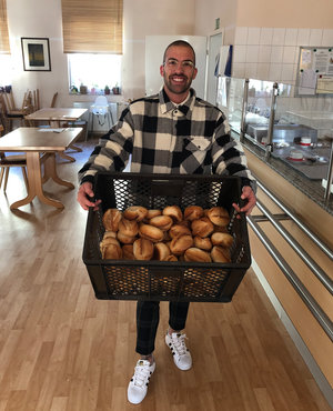 Gummersbach - Der Gummersbacher Joel Grindenau hat der Tafel 200 Brötchen gespendet - In Zukunft sollen weitere regionale Institutionen von seinem Backwarenlieferservice "Bäckerbote" profitieren.