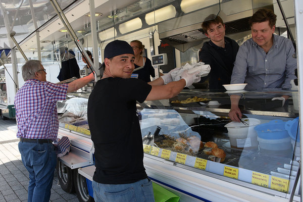 Inzwischen hat Sadic Cam sein Fahrtziel, den Rathausplatz in Bergneustadt erreicht. Dort herrscht auf dem Markt buntes, aber gesittetes Treiben. Die Schlange vor dem Fischwagen wirkt lang, die Menschen stehen allerdings mit reichlich Abstand zueinander, an. Der Fahrer hat Glück, dass er eines der letzten Stücke frischen Fisch ergattern konnte, ehe er, nach dem Sprung in den Supermarkt für die ebenfalls bestellte Marmelade, seine Fahrt fortsetzt. Sein Weg führt ihn nach Gummersbach-Derschlag. Dort freut sich die 92-jährige Ingelore Lobe, als es an ihrer Türe klingelt und die bestellten Köstlichkeiten postwendend geliefert werden.