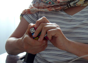 [Dorothea Feldkamp gewinnt allmählich ihre alte Fingerfertigkeit zurück.]