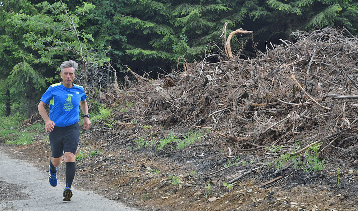 Jens Klein bezeichnete sich heute Morgen als Mensch mit schrägen Ideen, als er den Halbmarathon um den Gummersbacher Hömerich absolviert hatte. Wie immer für den guten Zweck (OA berichtete). Rund um das im April größtenteils abgebrannte Waldstück absolviert der Läufer regelmäßig seine Trainingseinheiten und dabei war ihm eine durch das Feuer zerstörte Bank an einem Aussichtspunkt aufgefallen. Die nächste „schräge Idee“ war spontan geboren. Fragen wie „Wer ist der Eigentümer?“ und „Wer repariert die Bank?“ waren dem engagierten Gummersbacher durch den Kopf geschossen und er klopfte bei der örtlichen Stadtverwaltung an. Dort verwies man ihn an den Bauhof.