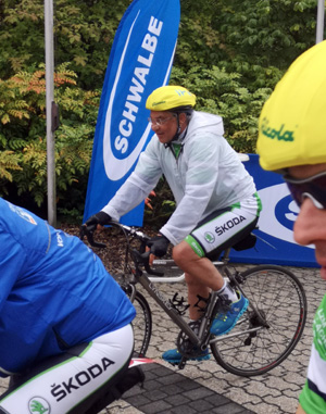 Lediglich am Prolog und der heutigen Etappe nahm Moderator Johannes B. Kerner teil, dafür allerdings bereits zum vierten Mal. Auch für ihn ist es immer wieder eine Ehre, sich für den guten Zweck einzusetzen. „Es ist schon etwas besonderes, wenn der grüne Lindwurm durch das Land zieht“, spielte der in Bonn aufgewachsene Journalist auf die grünen Trikots aller Fahrer an. Müde Knochen habe er nicht. "Ich laufe viel, habe Dampf auf den Beinen und bin gut gepolstert", erklärte er schmunzelnd.