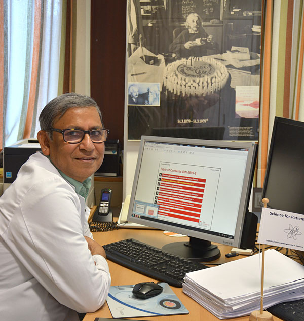 Er hält es mit den ganz Großen: Humboldt, Planck und Einstein. Ein Plakat des Begründers der Relativitätstheorie ziert daher auch die Wand über seinem Schreibtisch. Für den Medizinphysiker Professor Dr. Golam Abu Zakaria geht in seinem Büro im Kreiskrankenhaus Gummersbach eine Ära zu Ende: seine eigene, ganz persönliche Erfolgsgeschichte. Nach seinem Abitur in Bangladesch sollte er eigentlich auf Wunsch der Eltern Arzt oder Bauingenieur werden – jedenfalls etwas, das den Menschen in seinem armen Heimatland helfen würde. Tatsächlich begann er seine universitäre Laufbahn zunächst auch mit einem Studium der Ingenieurwissenschaft. Doch Themen, die bei vielen anderen nur große Fragezeichen hinterlassen, hatten den jungen Wissenschaftler schon früh begeistert. Mathematik, Physik im Allgemeinen und Quantenphysik im Besonderen – es sei „die Logik hinter den Dingen“, die ihm am besten gefalle, erzählt Professor Zakaria fröhlich.