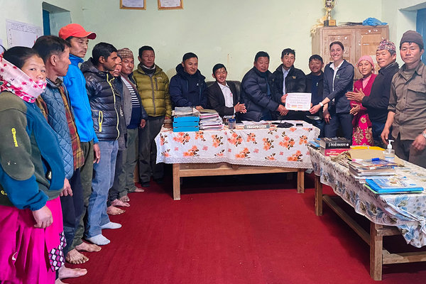 [Renate Kotz hat dem Schulkomitee der Shree Basa Khali Secondary School einen Scheck übergeben.]