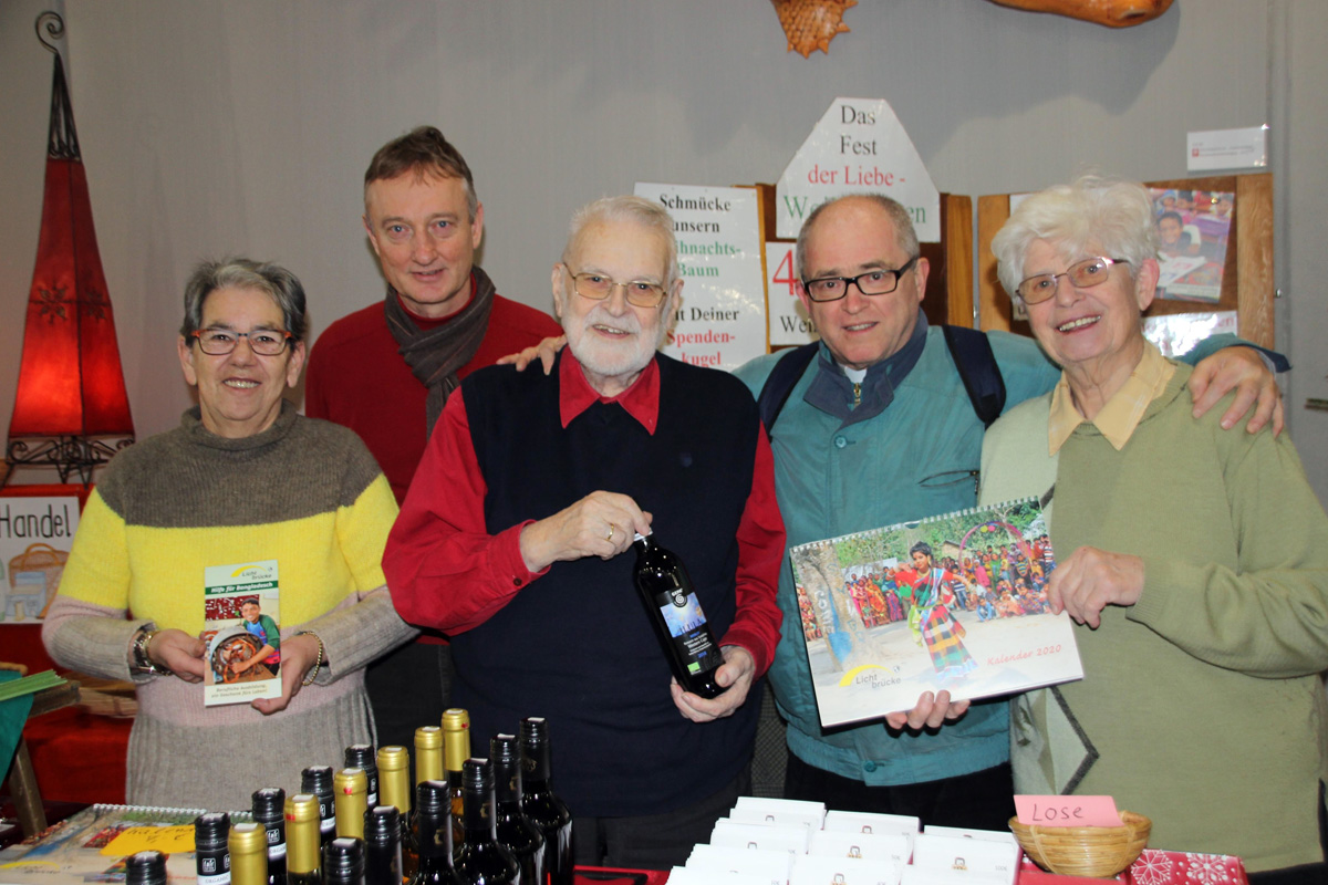 Stiefelhagen freute sich über die gute Stimmung vor Ort und das Motto des diesjährigen Basars: In der Heimat Zukunft schenken. „Für mehr als viereinhalb Jahrzehnte ehrenamtliche Arbeit danken wir den Motoren, der Familie Knipp“, sagte Pfarrer Bersch und Wilke ergänzte: „Der Basar wird für Bildung und Ausbildung benutzt, heute sollten die Portemonnaies locker sitzen.“ Alle drei betonten, wie wichtig in unserer Zeit so ein Weihnachtsbasar sei, mit dem Hintergrund, anderen Menschen zu helfen. „Der Basar in Engelskirchen ist eines der größten Fundamente der Lichtbrücke und alles hat mit der Spitze, Familie Knipp, angefangen“, fügte Klaus-Peter Flosbach hinzu.