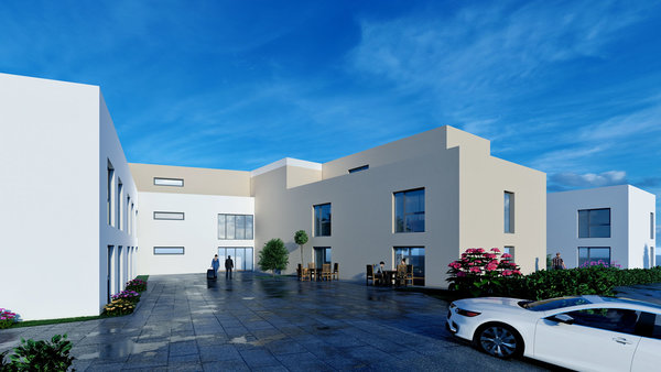 Im von der Straße aus gesehen hinteren Gebäudeteil ist ein weiteres Staffelgeschoss mit großen Dachterrassen geplant. Hier sind außerdem zehn kleine Apartments für Intensivpflegepatienten vorgesehen. Sie sollen hier dauerhaft leben können ohne ständiges umziehen für bestimmte Behandlungen.