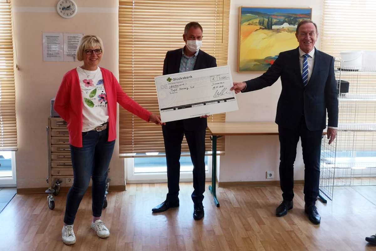 Nicht nur in Zeiten der Corona-Pandemie ist die Arbeit der Tafeln ein wichtiger Bestandteil gesellschaftlicher Hilfe für Bedürftige. Das weiß auch Michael H. Heinz, Präsident, des Bundesverbandes Deutscher Versicherungskaufleute (BVK). Der Verband aus Bonn hat es sich zur Aufgabe gemacht, in Zusammenarbeit mit Politikern der Gesellschaft etwas zurückzugeben und alle zwei Jahre eine Einrichtung zu unterstützen. „Der Wunsch, Gutes zu tun, entspricht unserem Leitgedanken“, so Heinz, der am Montag gleich zwei der symbolischen Schecks im Gepäck hatte.
