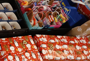 [Neben der Geldspende haben die TikToker auch Nikolausstiefel, Süßigkeiten und Wanduhren übergeben.]
