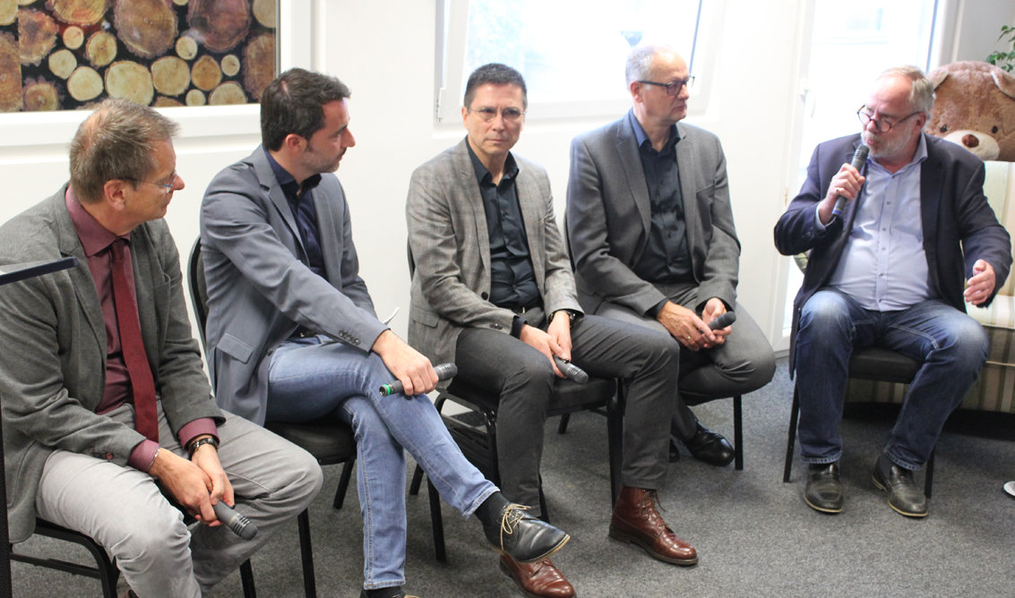 Auf dem Podium waren dafür Rainer Drescher, Geschäftsführer des Jobcenters Oberberg, Thomas Hein, Fachbereichsleiter Jugend, Familie und Soziales bei der Stadt Gummersbach, Dietmar Persian, Bürgermeister der Stadt Hückeswagen, und Andreas Sellner, Abteilungsleiter Gefährdetenhilfe der Diözesancaritasverbände, versammelt. Moderiert wurde die Diskussion von Alexander Königsmann. Persian sagte, dass es in Hückeswagen bei 5.500 Wohnungen 700 mit Sozialpreisbindung gebe, davon liefen aber einige aus. „Wir müssen weitere Wohnungen schaffen.“ Allerdings sei es schwierig, Investoren für solche Projekte zu gewinnen, die Förderungen seien zu gering. Stattdessen sieht er viel ungenutztes Potenzial beim vorhandenen Wohnraum. „Viele Einliegerwohnungen stehen leer. Da müssen wir ansetzen, auch um Jung und Alt zusammenzubekommen.“