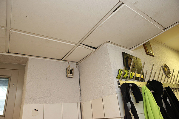 [Das Vereinsheim bricht immer weiter auseinander. Inzwischen sind die meisten Räume gesperrt. Die Verantwortlichen machen sich besonders um die Leitungen Sorgen. Sie wissen nicht, wielange diese noch halten.]