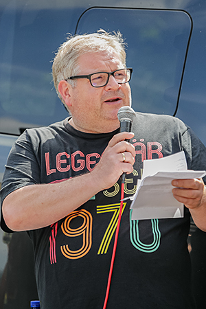 An den Eventpoints in Thier und Agathaberg verfolgten wieder zahlreiche Zuschauer das Renngeschehen und genossen bei bestem Wetter das kulinarische und kulturelle Angebot der veranstaltenden Vereine. In Agathaberg wurde das Rennen zudem auf einer großen Leinwand gezeigt. „Wir freuen uns definitiv nach der langen Pause endlich wieder hier zu sein“, sagte Helmut Kortz (Foto) vom Dorfverein Agathaberg. „Für unser Dorf ist das ein echtes Highlight“, hatte er kaum Probleme Helfer für Aufbau zu finden: „Nach Corona waren alle sehr motiviert und mit vollem Einsatz dabei.“