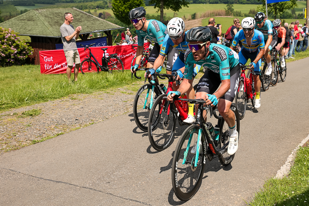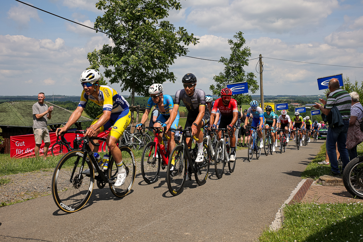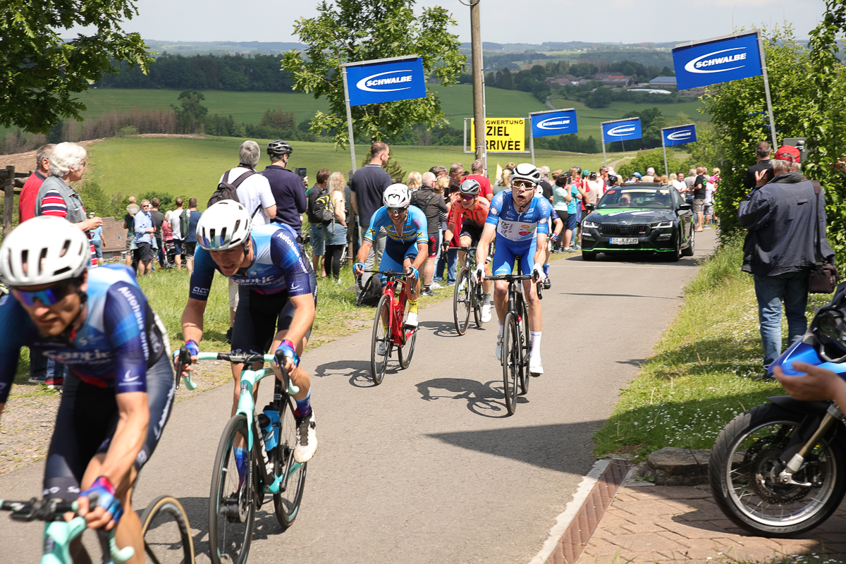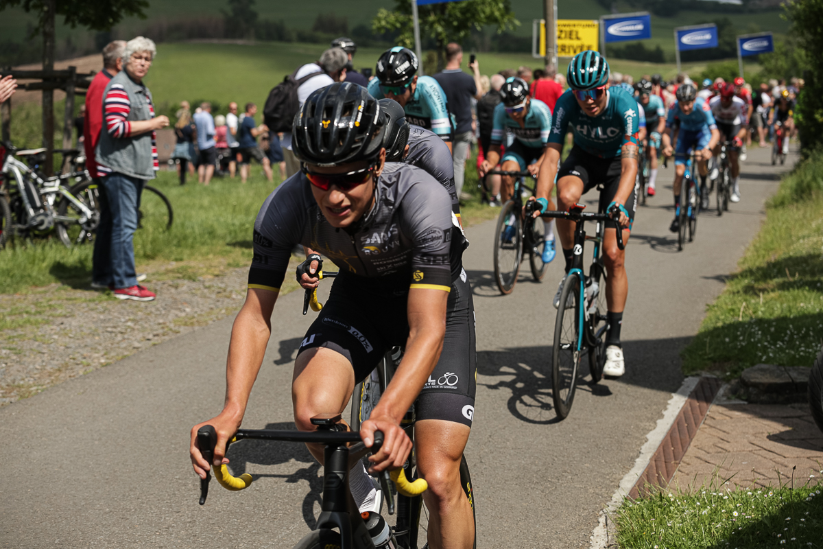 In einem spannenden und abwechslungsreichen Rennen hatte sich das Trio am Ferrenberg in Overath auf dem Weg Richtung Lindlar-Hohkeppel 55 Kilometer vor Schluss von der Spitzengruppe abgesetzt und phasenweise einen Vorsprung von über einer Minute herausgefahren. Die Verfolger starteten zwischenzeitlich zwar noch eine Aufholjagd, waren sich insgesamt aber zu uneinig bei der Führungsarbeit an der Spitze des knapp 30-köpfigen Feldes, um die Lücke noch einmal entscheidend zuzufahren.