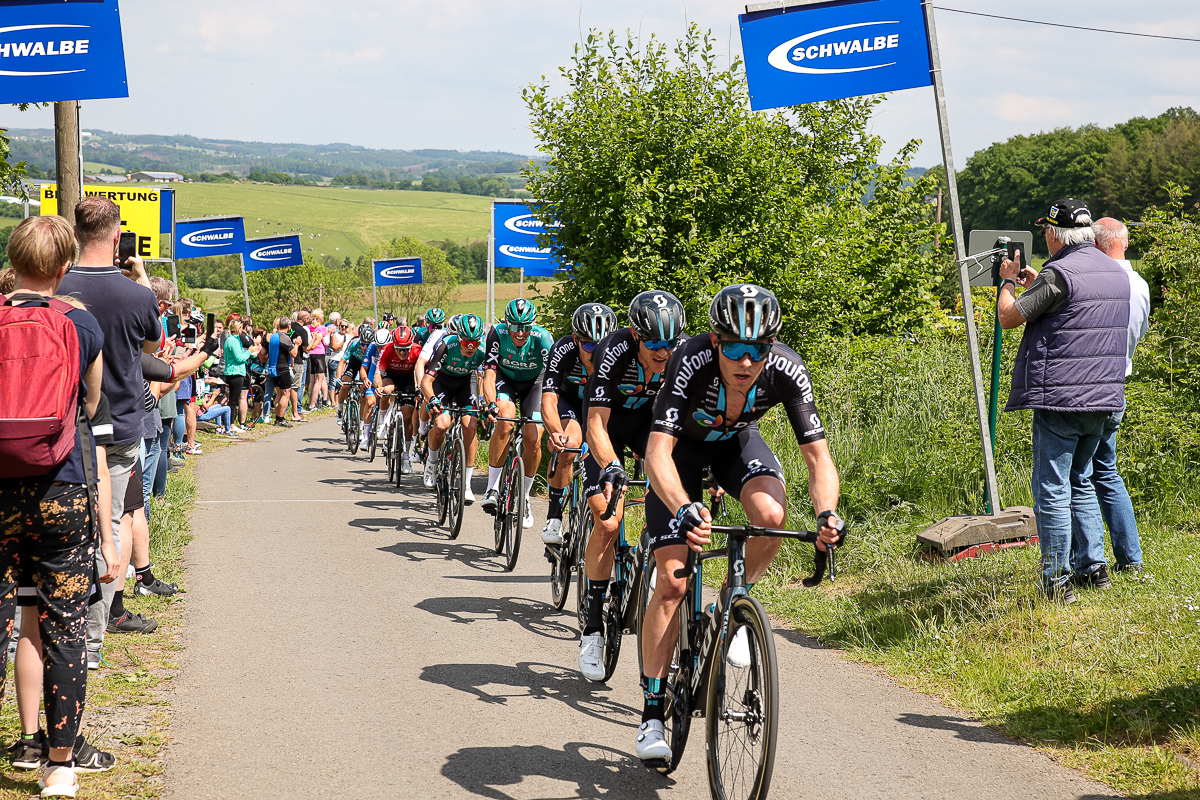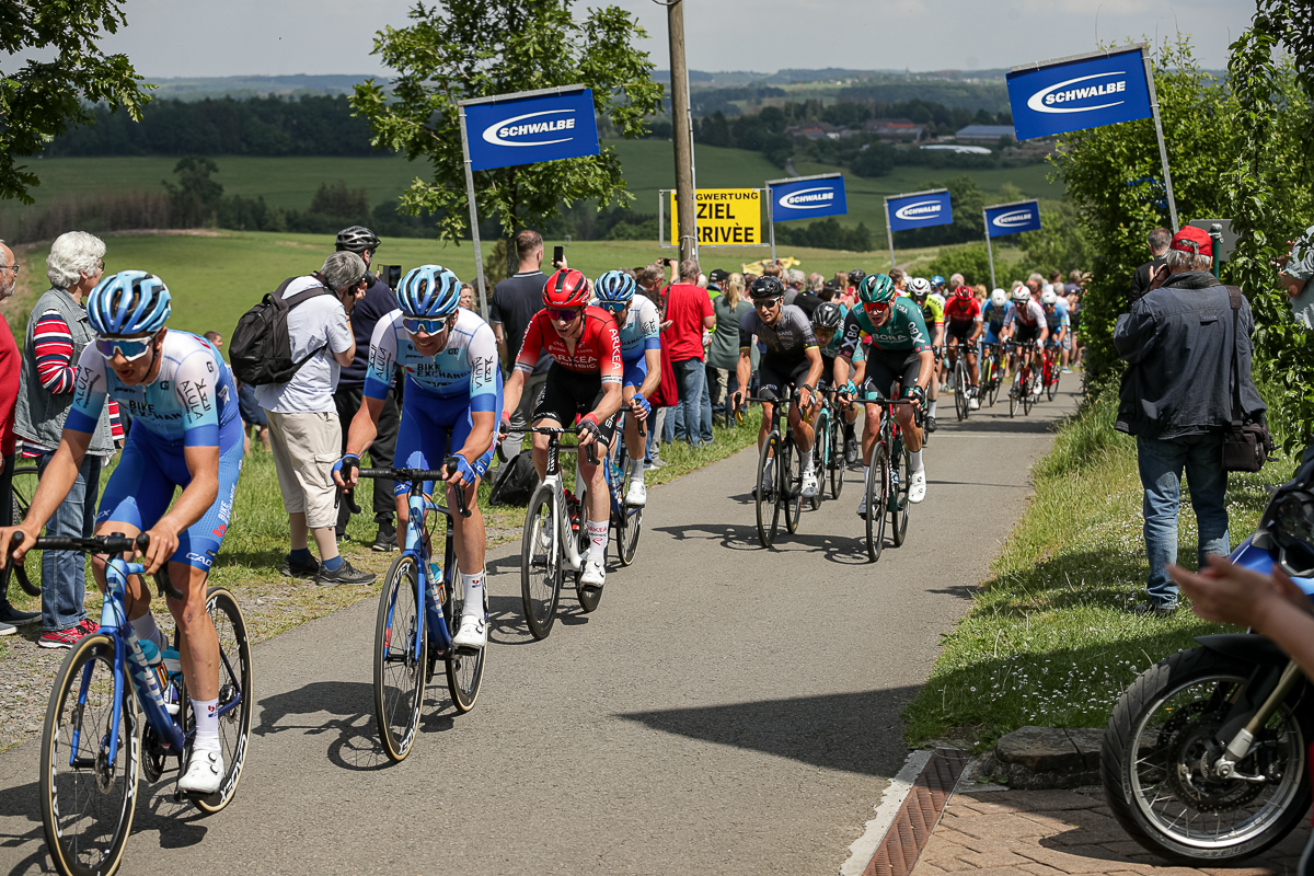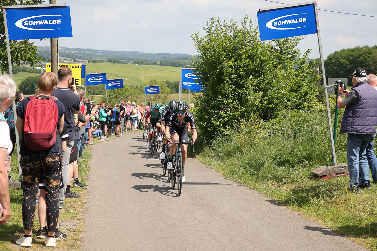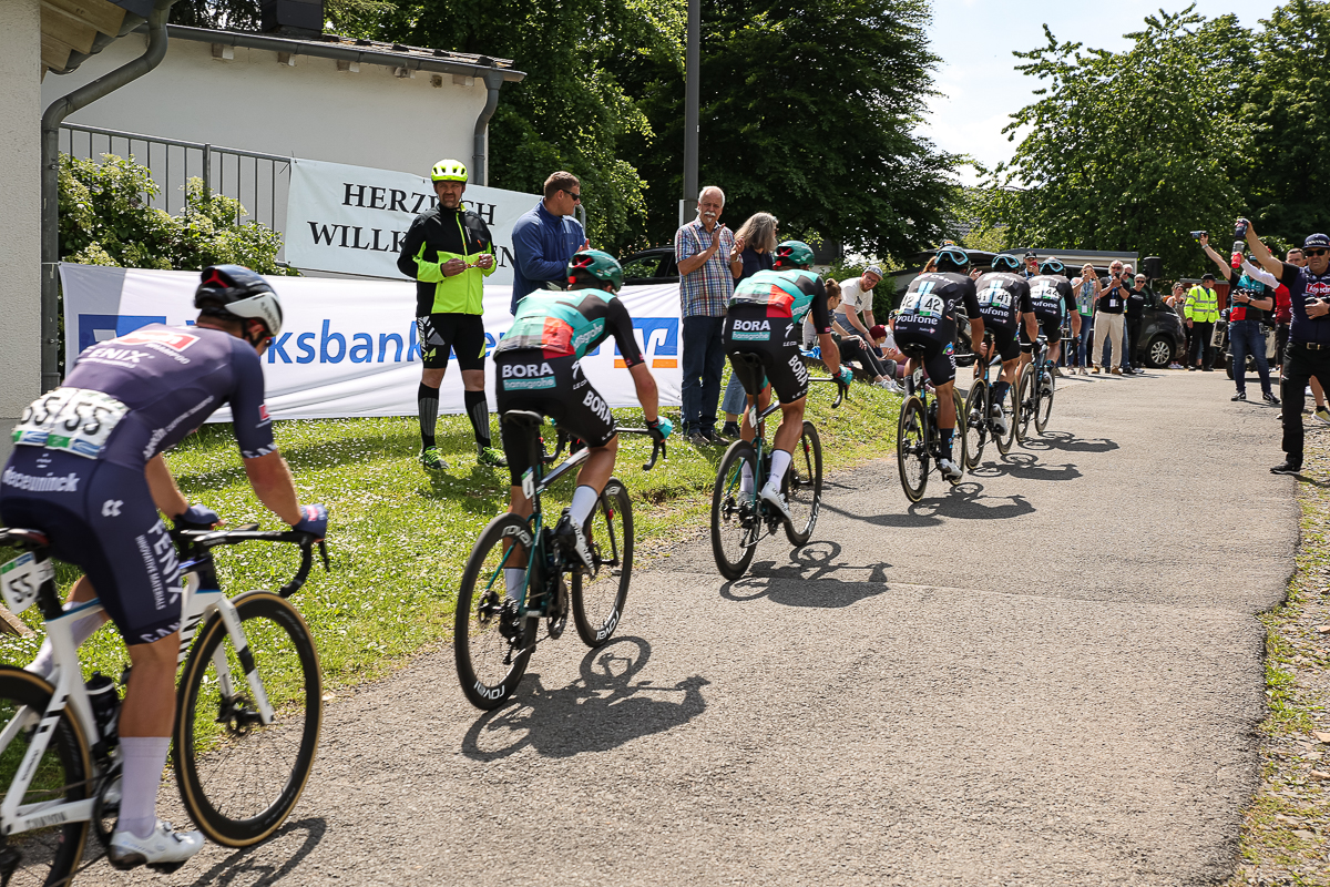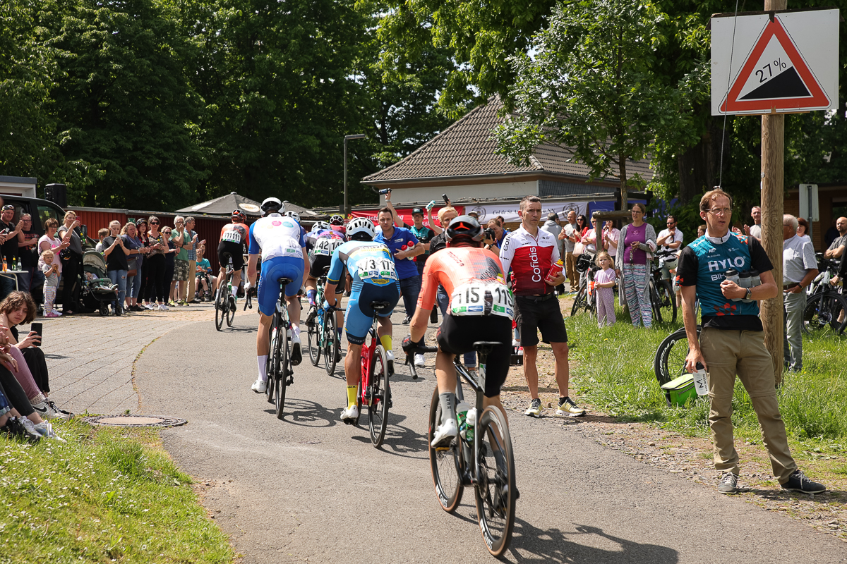 In einem spannenden und abwechslungsreichen Rennen hatte sich das Trio am Ferrenberg in Overath auf dem Weg Richtung Lindlar-Hohkeppel 55 Kilometer vor Schluss von der Spitzengruppe abgesetzt und phasenweise einen Vorsprung von über einer Minute herausgefahren. Die Verfolger starteten zwischenzeitlich zwar noch eine Aufholjagd, waren sich insgesamt aber zu uneinig bei der Führungsarbeit an der Spitze des knapp 30-köpfigen Feldes, um die Lücke noch einmal entscheidend zuzufahren.