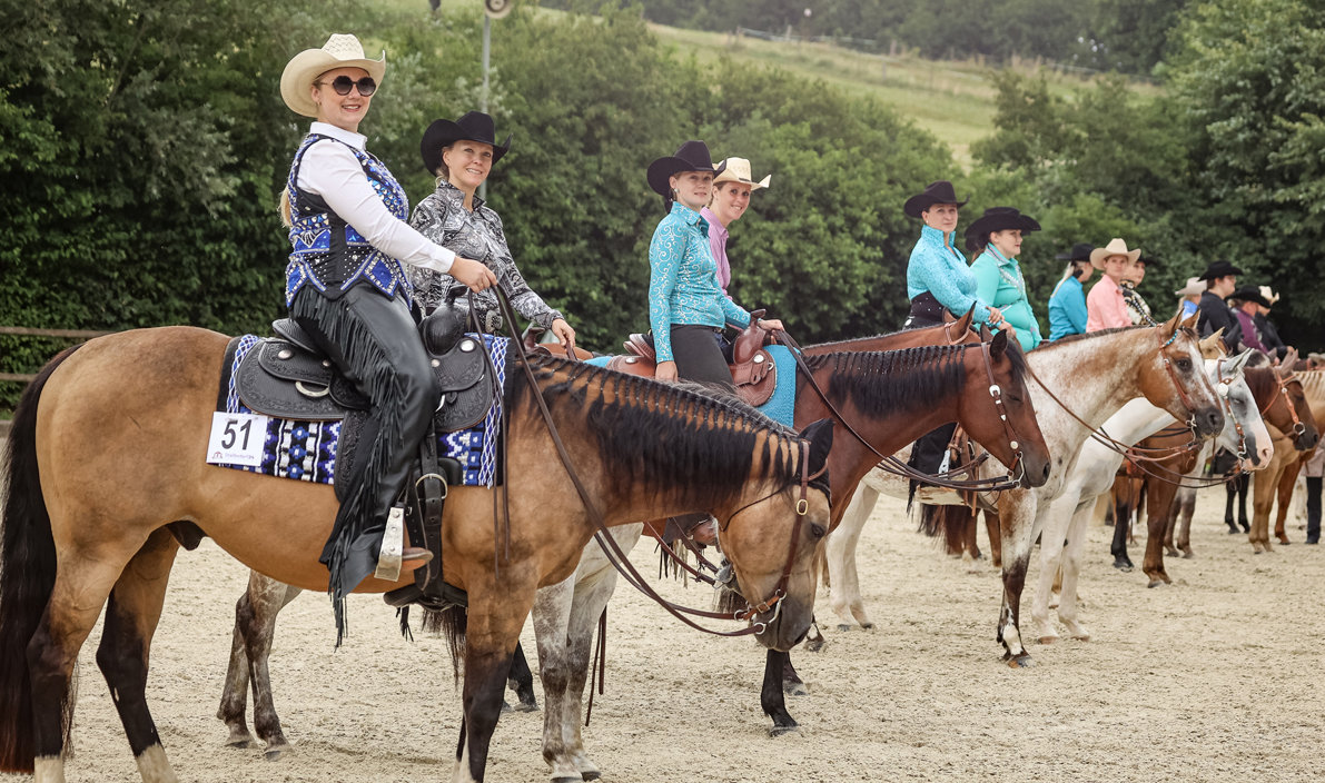 Das Tal der Geringhauser Mühle in Nümbrecht hat sich am vergangenen Wochenende wieder in ein Western Camp verwandelt. 150 Reiter aus Nordrhein-Westfalen und den angrenzenden Bundesländern strömten vor dem ersten Juliwochenende mit ihren Pferden ins Oberbergische, um nach der zweijährigen Unterbrechung an den 38. Nümbrecht Open teilzunehmen. Das traditionelle Sommerturnier im Trainingsstall Leckebusch wurde auch in diesem Jahr von der Ersten Western Union (EWU) ausgerichtet und diente als Qualifikationsturnier zur Deutschen Meisterschaft, welche im September in Bayern stattfindet.