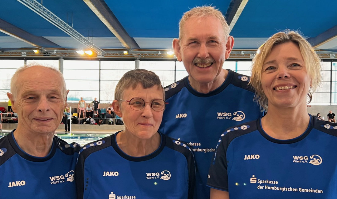 Die Bilanz der Wiehler konnte sich sehen lassen: Mit drei ersten Plätzen erreichte man dreimal den Titel „NRW-Masters-Meister“. Henning Hübner (AK 80) sicherte sich über 200 Meter Brust die Silbermedaille. Michaele Schorlemer (AK 75) gewann über 200 Meter Rücken. Ebenso erfolgreich war Ekkehard Stöber (AK 70), der über 200 Meter Rücken den ersten Platz belegte. Barbara Wiede (AK 60) komplettierte das erfolgreiche Ergebnis mit einem Sieg über 1.500 Meter Freistil.