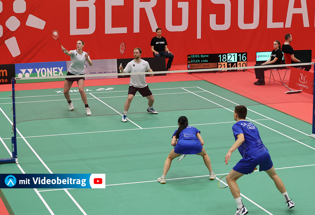 Die übrigen Punkte für Deutschland holten Geiss und Linda Efler im Mixed (18:21, 21:14 und 21:14 gegen David Salutt/Martina Corsini), Matthias Kicklitz (21:18 und 23:21 gegen Enrico Baroni) und Yvonne Li (21:19 und 21:10 gegen Gianna Stiglich) im Einzel sowie das Frauendoppel Leona Michalski/Franziska Vollmann (21:10, 20:22 und 21:8 gegen Martina Corsini/Emma Piccinin).
