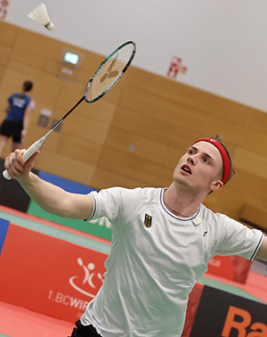 Beim EM-Qualifikationsturnier in der Wipperfürther VOSS-Arena hat die Deutsche Badminton-Nationalmannschaft am Donnerstagabend einen Start nach Maß gefeiert. Das Team besiegte zum Auftakt die italienische Equipe mit 5:0. Dabei kam auch Kenneth Neumann vom gastgebenden Bundesligisten 1. BC Wipperfeld zum Einsatz. Zusammen mit Bjarne Geiss (Blau-Weiß Wittorf) besiegte er im Doppel das italienische Duo Fabio Caponio/Giovanni Toti mit 18:21, 21:14 und 21:11.