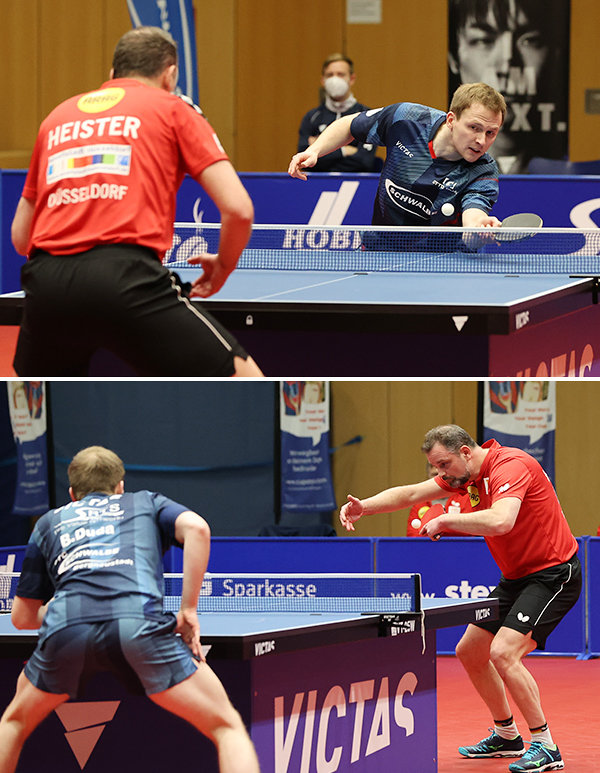 [23 Jahre Altersunterschied standen sich im ersten Match des Tages zwischen Benedikt Duda und Düsseldorfs Trainer Danny Heister gegenüber.]