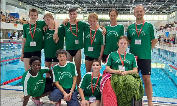 Den inklusiven Charakter des Schwimmwettkampfs verdeutlichte zu Beginn die gemeinsame ‚Get together Staffel‘, in der JtfO- und JtfP-Schwimmer der einzelnen Bundesländer gemeinsam in einer Staffel schwammen. Hier nahmen vier Kükelhaus-Schwimmer teil, die auch hier Rang sieben im Gesamtergebnis erreichten. Ein besonderer Höhepunkt war für die Hugo-Kükelhaus-Schule die Ehrung mit der Plakette ‚50 Jahre – 50 Orte‘ zum 50-jährigen Jubiläum für Jugend trainiert, mit der die Schule ausgezeichnet wurde – als eine von nur zwei Schulen.