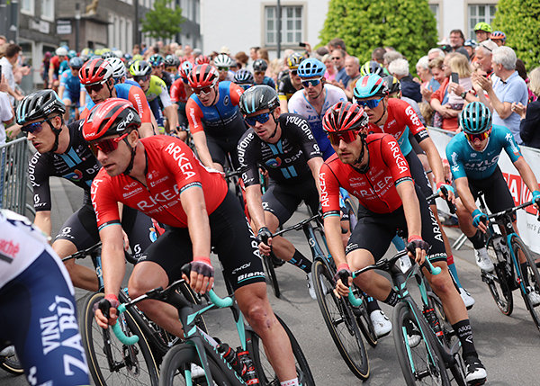 "Es war ein super hartes Rennen, bei dem die Beine verkrampft haben", sagte der Sieger von "Rund um Köln", der sich am Ende gemeinsam mit 13 Konkurrenten die Spitze des Feldes geteilt hatte. Bei schwülen Temperaturen an einem wolkenreichen Sonntagmittag zog es viele Tausend Schaulustige an die Strecke. Gleich zwei Mal fuhren die Athleten über den Wipperfürther Marktplatz sowie die Ortsteile Wipperfeld, Thier und Agathaberg, wo der höchste Punkt der Strecke mit einem knackigen Anstieg wartete. Vor allem im Bergischen Land setzte sich der zweimalige deutsche Meister Maximilian Schachmann in Szene und fuhr 44 Kilometer am Stück an der Spitze. Er wurde am Ende Dreizehnter.