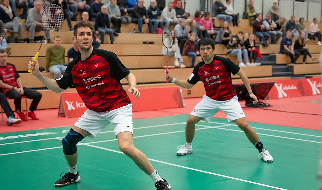 Sein langersehntes Comeback in der Liga feierte Mark Lamsfuß, der an der Seite von Nationalmannschaftskollege Jones Ralfy Jansen im 1. Herrendoppel auflief und einen ungefährdeten Erfolg gegen Felix Hammes und Daniel Hess feierte (11:4, 11:4, 11:6). „Mein Knie ist wieder stabil und ich bin sehr, sehr froh, dass ich heute endlich nochmal hier vor heimischem Publikum aufschlagen und das Team unterstützen konnte“, erklärte Lamsfuß.