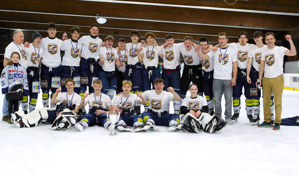Die U20 der Wiehl Penguins hat die Meisterschaft in der Regionalliga West gewonnen. Im letzten Saisonspiel gegen Ratingen war alles angerichtet für die große Sause, nachdem man sich mit einer Serie von acht Siegen in Folge an die Tabellenspitze katapultiert hatte. Die Penguins agierten sofort druckvoll im Offensivspiel, mit unbedingter Entschlossenheit, den entscheidenden Schritt zu machen. Innerhalb von zwölf Minuten wurde eine 6:0-Führung herausgespielt. Leonard Kurz traf mit zwei Toren zu Beginn, Ben Kautschke per Hattrick und schließlich Mats Göbel.