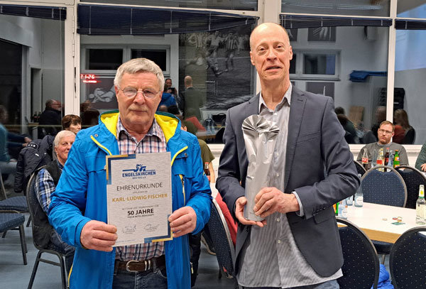 [Karl-Ludwig Fischer (li.) ist seit 50 Jahren Mitglied beim VfL Engelskirchen.]