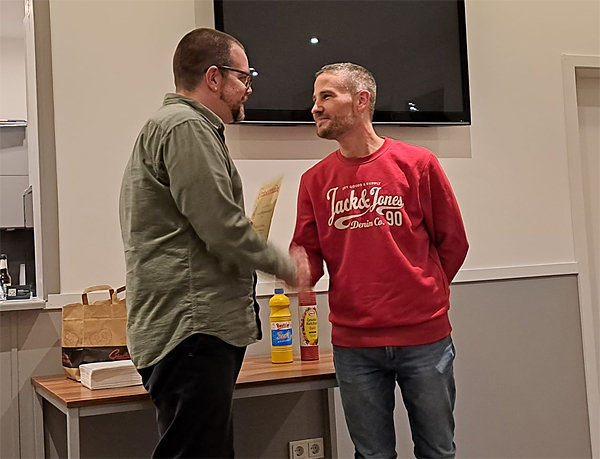 [Foto: privat --- Der Vorsitzende Christopher Jauch und Patrick Klein (re.) bei der Übergabe der Urkunde.]