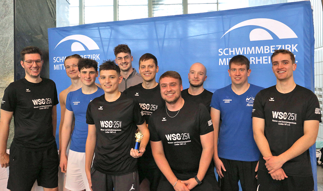 In einem knappen Kampf um Bronze konnten sich die Männer des WSC gegen das Team von Kopfsprung Köln durchsetzen. Kurz vor Schluss überholten sie die Domstädter und gaben den dritten Platz auf dem Podium nicht mehr her. Über das Treppchen durften sich Fynn Jeromin (2007), Leo Pietsch (2008), Noel Hoxha (2009), Julius Schnepper (2000), Tim Kötter (1991), Lukas Kawetzki (2002), Niklas Nellen (1997), Florian Podschun (1999) und Fynn Raffelsieper (2004) freuen.