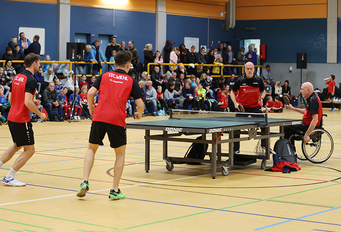 Ein besonderes Highlight war das Einlagespiel der Tischtennisspieler des TTC Wiehl. Gemeinsam mit Rollstuhlfahrer Charly Weber zeigten die Sportler spektakuläre Ballwechsel. Zum Rahmenprogramm gehörte zudem der Zirkus „Blitzi Flitzi“ der Sportklasse 5b der Gesamtschule Reichshof. Nicht fehlen durfte der Staffelwettbewerb der vier Grundschulen um den Wanderpokal des Gemeindesportverbandes, auch wenn in diesem Jahr nur drei Schulen den Parcours durchliefen, nachdem die GGS Hunsheim krankheitsbedingt nicht teilnehmen konnte. Unter großem Jubel ging die Staffel der GGS Denklingen vor den anderen Staffeln aus Wildbergerhütte und Eckenhagen als Sieger ins Ziel.