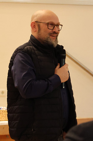 [Bürgermeister Thomas Hellbusch während seiner Rede in der Aula.]