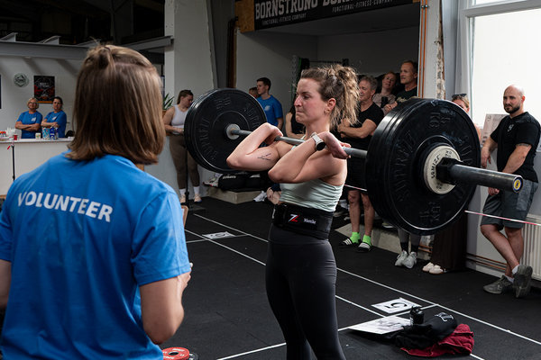 Die 28-Jährige Laurina aus Hagen trainiert seit zweieinhalb Jahren vier- bis fünfmal in der Woche bei den „Invictus Athletics Hagen“. Eigentlich kommt sie aus der Leichtathletik und ist vor zwei Wochen noch bei einem Halbmarathon mitgelaufen. Die ständig variierenden, funktionalen Bewegungen beim CrossFit, die mit hoher Intensität durchgeführt werden, machen ihr großen Spaß. „In Holland waren wir schon bei einem ähnlichen Event“, erzählte sie in der Pause begeistert. Sie stemmte mal eben über 60 Kilo und hatte zuvor auch die anderen Workouts absolviert.