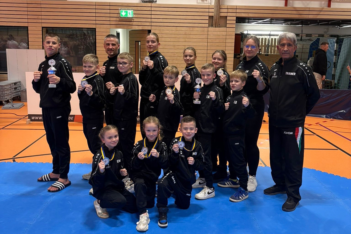 Beim letzten Turnier des Jahres sammelten die Taekwondo-Kämpfer des TV Becketal noch einmal fleißig Medaillen. Mit 13 Wettkämpfern nahm der Verein am vergangenen Wochenende am 3. Internationalen Eschweiler Jugend Cup teil. Gewohnt stark präsentierte sich Lias Klein, der genau wie Tom Rieger den ersten Platz holte. Ebenfalls erfreulich: Newcomerin Clara Ammann holte bei ihrem ersten Wettkampf gleich einen dritten Platz – genau wie Alexander Bese, Elias Bese und Maximilian Nitschke. Silbermedaillen holten Liana Klein, Valerie Heutzenröder, Leonie Bese und Elisa Schneider. Großmeister Bajrush Saliu und seine Trainer Patrick Klein und Lilia Heutzenröder freuten sich über die Platzierungen ihrer Athleten.