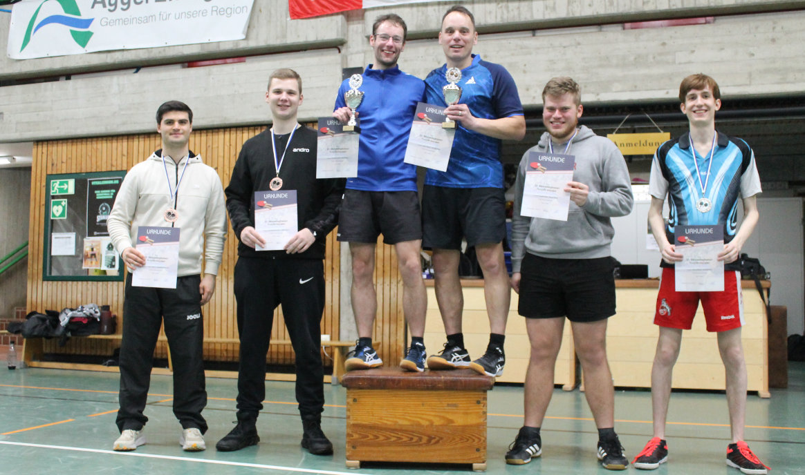 Im Doppel-Finale gewannen Kai Stockburger und Tobias Arntz (TuS Marialinden / TV Dümmlinghausen) gegen das Dümmlinghauser Duo Thomas Stein und Peter Rutzen in 3:2 Sätzen. In der C-Klasse trafen Leon Heckel (SG Köln Worringen) und Thomas Matzkeit (Aggertaler TTC) im Finale aufeinander. Hier behielt Leon Heckel in Satz fünf die Oberhand. Dritter wurde Marciej Dylewski vom TV Niederseßmar. Als bestes Doppel in der C-Klasse erwies sich die Paarung Leon Heckel / Stefan Lützenkirchen vom TTG Witterschlick. Zweite wurde Thomas Matzkeit mit seinem Partner Kevin Altwicker vom VfL Gummersbach.