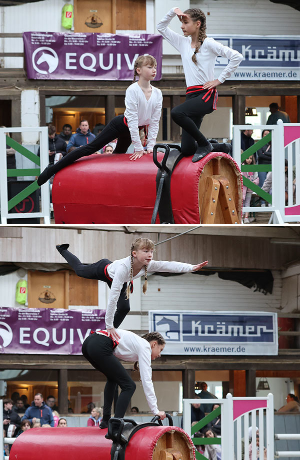 Teilnehmerinnen wie Isabella und Lia vom LZRFV Oberberg-Süd, die beim Wettbewerb „Doppel-Show“ als Mutter-Kind-Team mit dem Thema „Mufasa – König der Löwen“ starteten, berichteten stolz: „Es hat gut geklappt. Wir haben viel zusammengelegt, das war schon harte Arbeit.“ Auch Johanna Weber und Julia Widera von der Voltigier- und Reitsportgemeinschaft 20*10 waren sehr zufrieden: „Wir haben sehr hart dafür trainiert und sind sehr stolz auf unsere Performance.“