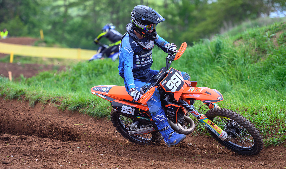Beim dritten Rennen zur Deutschen Motocross-Meisterschaft der Junioren im thüringischen Moorgrund kämpfte Jaden Wendeler vom MSC Bielstein in der Klasse bis 125 Kubikzentimeter um Platzierungen und Punkte. Die enge Hartboden-Strecke im Wartburg-Kreis stand für den KTM-Pilot zum ersten Mal im Rennkalender und entsprach aufgrund geringer Überholmöglichkeiten nicht unbedingt seinem bevorzugten Terrain, dennoch konnte er sich zügig darauf einstellen. So gelang es ihm, die Qualifikation auf Rang acht zu beenden. Beim Start des ersten Laufs verbesserter er sich um eine Position auf Platz sieben und hielt diesen bis ins Ziel.
