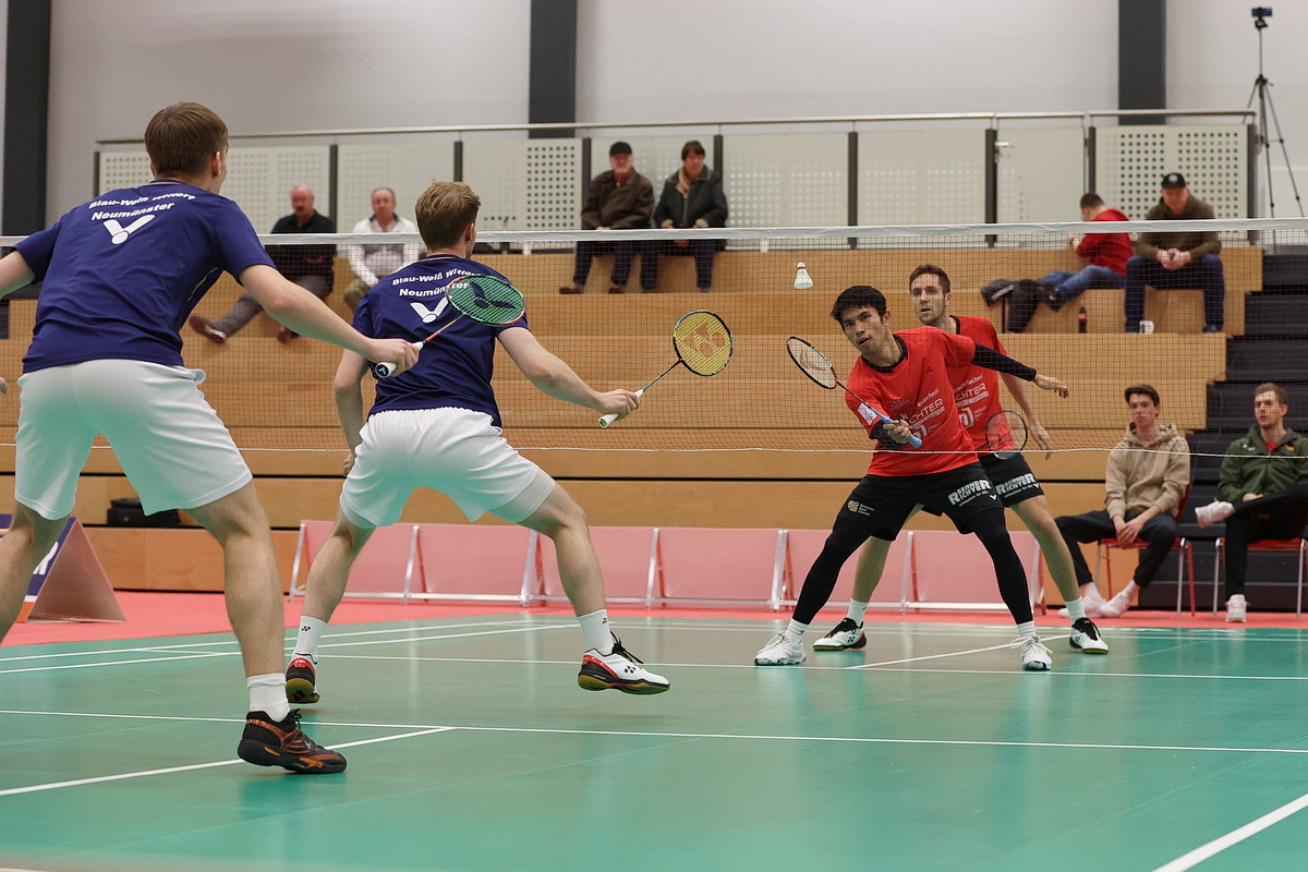 Ein Debüt gab es im zweiten Männer-Doppel: An der Seite von Marvin Seidel trug erstmals Kenneth Neumann das BCW-Trikot in der deutschen Elite-Liga. Der 18-Jährige profitierte in einigen Situationen von dessen langjähriger Erfahrung, wusste aber auch selbst seine Reichweite zu nutzen. Seidels sauber platzierte Bälle brachten die Gegner Matthias Kicklitz und Patrick Scheiel mehrfach in die Defensive, obwohl auch das Wittorfer Duo eine respektable Leistung zeigte. War der Satz-Gewinn im ersten Satz mit 12:10 noch sehr knapp, endeten die beiden folgenden Sätze mit 11:6 und 11:8 deutlicher zugunsten des BCW-Doppels.
