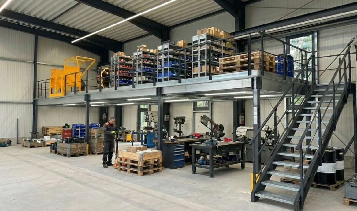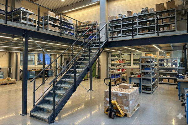- Energieeffizienz: Eine zweite Ebene in einer bereits beheizten Halle benötigt kaum zusätzliche Heizenergie. In Zeiten volatiler Energiepreise ein entscheidender Faktor für das Controlling.