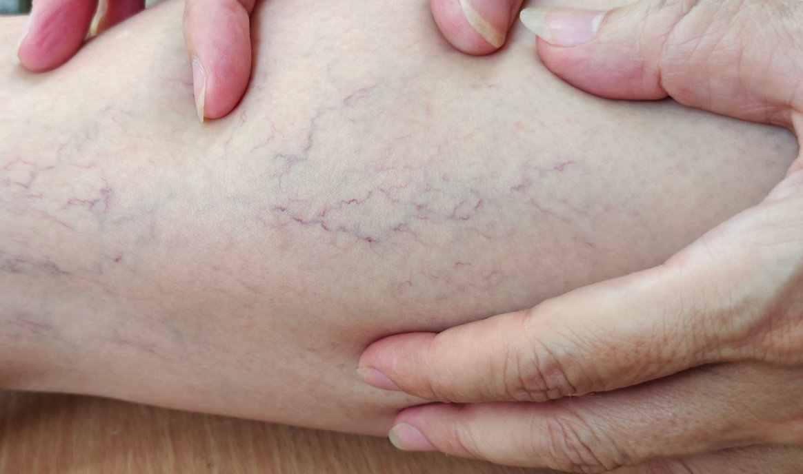 Besenreiser: Bei Besenreisern handelt es sich um sichtbare, erweiterte Blutgefäße, die in einem netzartigen Muster blau durch die Hautoberfläche schimmern. Auch wenn sie in der Regel harmlos sind, empfinden sie viele als kosmetisch störend. Die Verfärbungen können an den Unterschenkeln auf eine bereits fortgeschrittene Venenschwäche hindeuten.