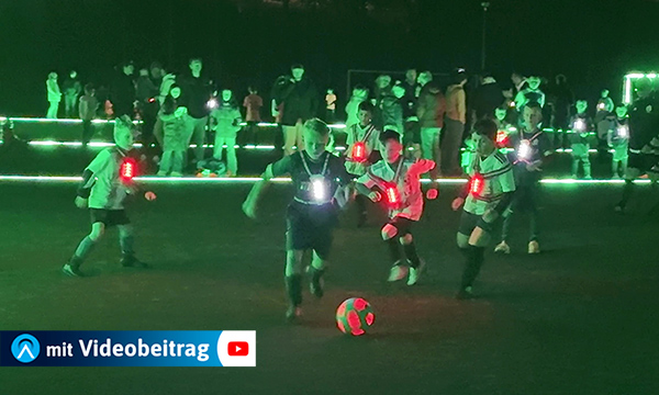 mkj; 08.03.2026, 13:00 UhrGummersbach - Leuchtende Linien, strahlender Ball und buntes Lichtermeer - Beim LED-Fußballabend der DJK Gummersbach wurde der Sportplatz in Strombach zur außergewöhnlichen Fußballarena.