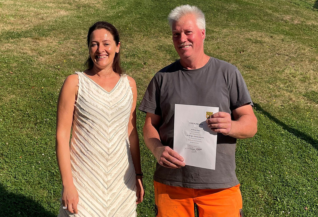 Andreas Braun hat bei der Stadt Waldbröl sein Dienstjubiläum gefeiert. Seit nun mittlerweile vier Jahrzehnten ist er laut Mitteilung für den städtischen Bauhof im Einsatz. Im September startete er dort seine Ausbildung zum Straßenbauer, die er 1987 abschloss. Seit Juli 2020 ist er stellvertretender Leiter des Bauhofs. Bürgermeisterin Larissa Weber überreichte Braun die Ehrenurkunde zum Dienstjubiläum: „40 Jahre – das ist eine Zeitspanne, in der sich nicht nur unsere Stadt verändert hat, sondern auch unser Bauhof, unser Team und sicherlich auch die Art und Weise, wie wir arbeiten. Doch eines ist in all diesen Jahren gleichgeblieben: Dein unermüdlicher Einsatz, deine Verlässlichkeit und dein großes Herz für unsere Stadt."