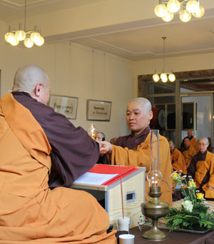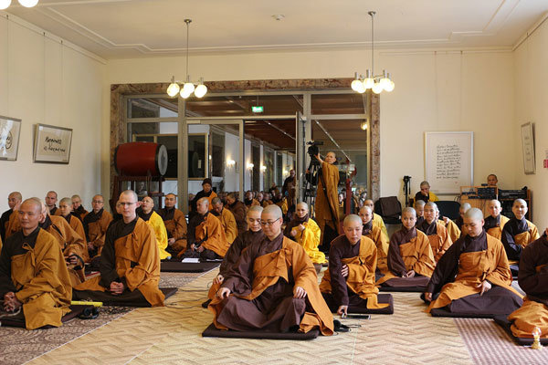 Kürzlich fand die Dharma-Lampen-Übergabe erstmalig im European Institute of applied Buddhism (EIAB) in Waldbröl statt, OA durfte dabei sein. „Dharma“ bedeutet Lehre des Buddhas. In Anwesenheit von über 200 Ordensmitgliedern wurden 21 Mönche und Nonnen zu Dharmalehrern ernannt und erhielten in dieser Zeremonie die Dharma-Lampe und damit die offizielle Lehrerlaubnis.
