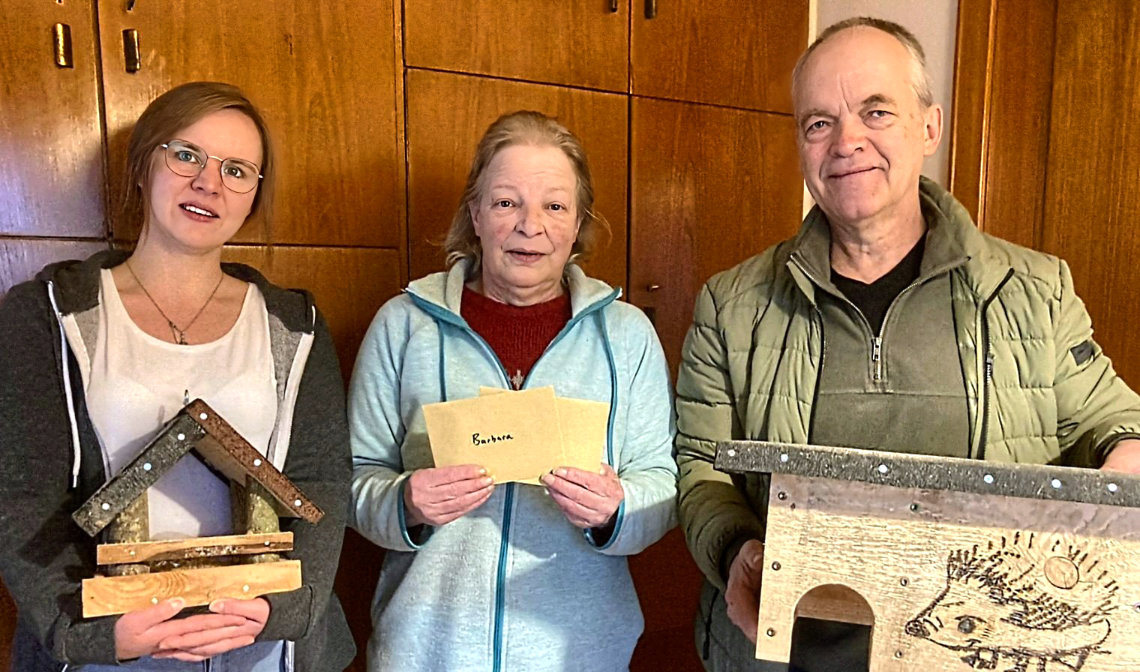 Kurz vor Weihnachten wurde die Igelhilfe Waldbröl wieder durch die NABU-Ortsgruppe Waldbröl mit einem Geschenk in Form eines Vogelfutterhauses, eines Igelschlafhauses und einer finanziellen Unterstützung bedacht. Die Igelstation wird seit vielen Jahren ehrenamtlich von Barbara Austermühle betrieben, die in diesem Jahr in der Hochzeit über 30 Igel gleichzeitig betreute. Dabei waren auch zahlreiche mutterlose Jungtiere, die noch spezielle Nahrung und viel Aufmerksamkeit benötigten, um stark genug für eine Auswilderung zu werden.