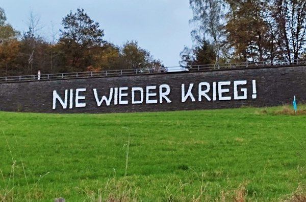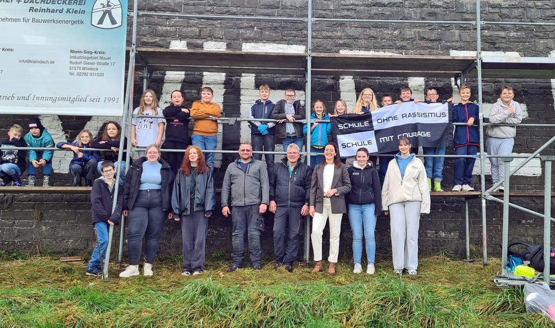 Schüler der Gesamtschule Waldbröl haben den Schriftzug „Nie wieder Krieg“ an der Friedensmauer in Waldbröl erneuert. Auch Bürgermeisterin Larissa Weber war vor Ort, um das Engagement zu würdigen. „Es ist beeindruckend, mit wie viel Hingabe die jungen Menschen diese wichtige Botschaft am Leben erhalten,“ betonte sie und dankte den Beteiligten für ihren Einsatz.