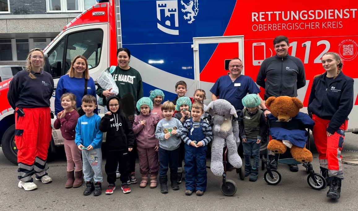 Töllner organisierte eine kindgerechte Führung und zeigte der Gruppe verschiedene Bereiche des Krankenhauses. Höhepunkt war der Blick hinter die Kulissen des Rettungsdienstes. Die Kinder durften einen Rettungswagen von innen besichtigen, das Blaulicht einschalten und erleben, wie ein Einsatzfahrzeug ausgestattet ist. Zum Abschluss erhielten die Kinder Geschenke aus dem Lager des Krankenhauses, darunter medizinische Hauben und Bücher.