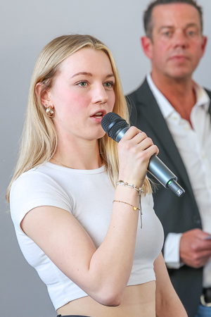 Die Mannschaftsehrungen, mit Urkunden und Losen für die Sportlertombola, wurden anschließend durch die Vorsitzende des Ausschusses für Soziales und Sport, Ursula Reinsch, vorgenommen. Eine erste Visitenkarte des sportlichen Show-Programms überreichte die K-Pop-Tanzgruppe des TuS 06 Waldbröl, unter Anleitung von Trainerin Lisa Fung-Müller, bevor Bürgermeisterin L Weber zu den Auszeichnungen für die besten Individualsportler schritt. Für die Vize-Meisterschaft U18 bei den Deutschen Meisterschaften und die damit verbundene Qualifikation für die Europameisterschaft in der Slowakei, sowie ihren dritten Platz in der 4 x 100 Meter Staffel des TSV Bayer Leverkusen wurde die Waldbrölerin Anne Böcker gewürdigt.